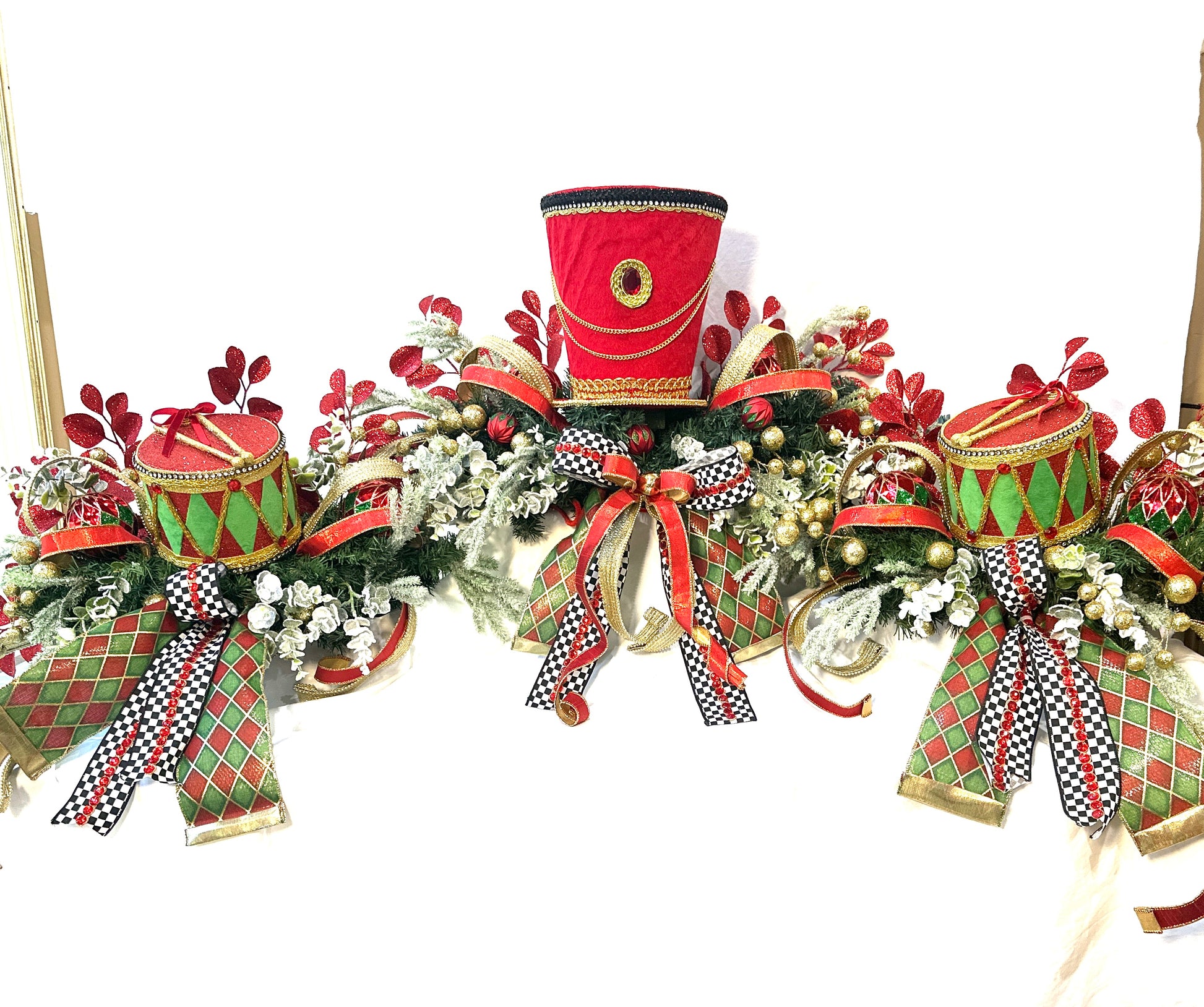 ๐ŸŽ„ Christmas Nutcracker Mantle Decor Set โ€“ 3-Piece Ready-to-Style Holiday Garland with Drums & Top Hat