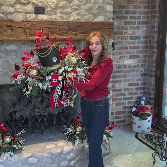 3 Piece No Hang Black, Red and White Nutcracker Christmas Mantle Decor with Harlequin Ribbon, Nutcracker Jeweled Hat & Nutcracker Drums