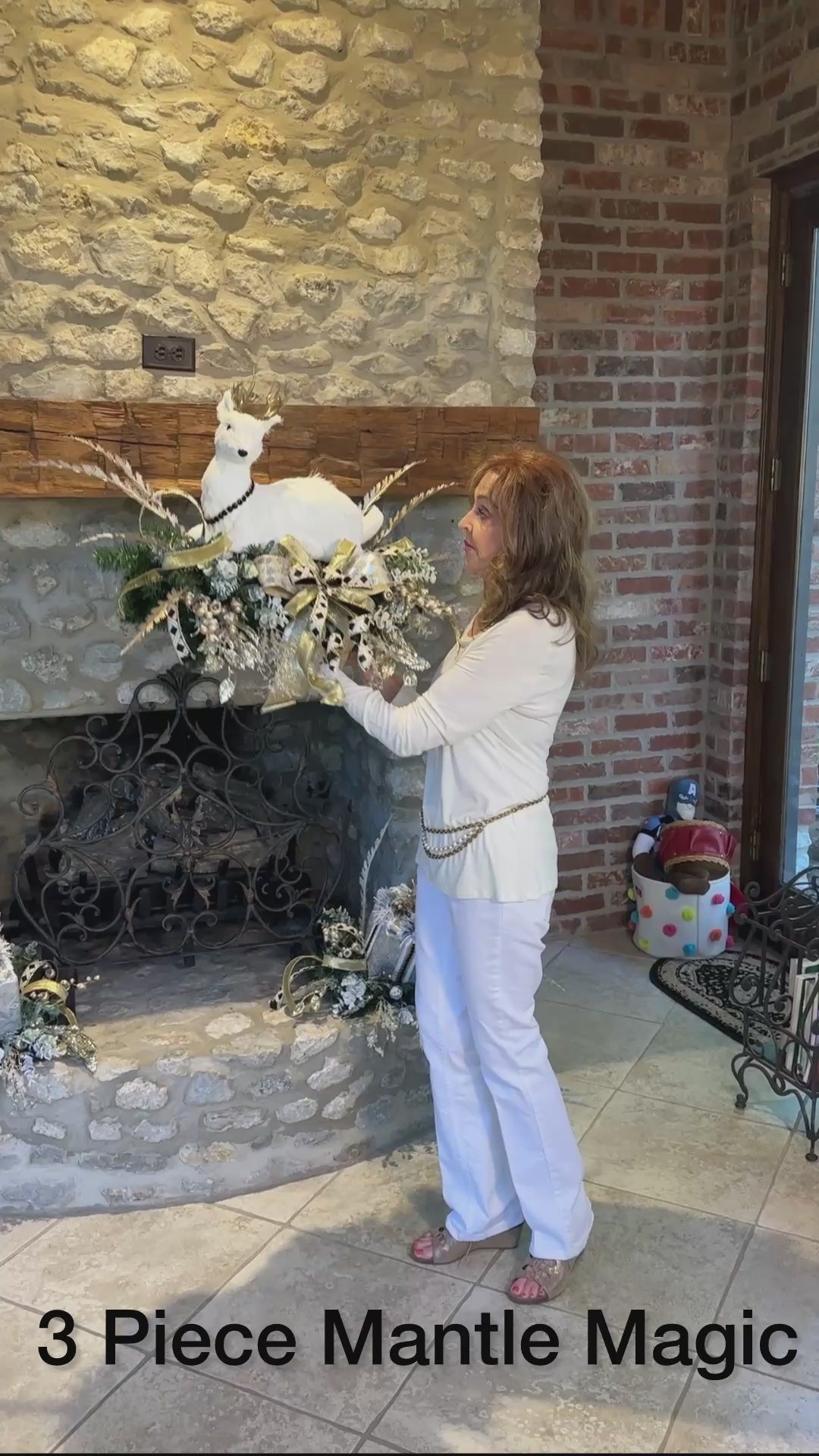 Elegant 3-Piece Christmas Mantle Set — Silver, Gold & Black Holiday Decor with White Deer | No Nails Required